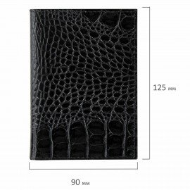 Обложка для автодокументов натуральная кожа кайман, без тиснения, черная, BRAUBERG, 238189