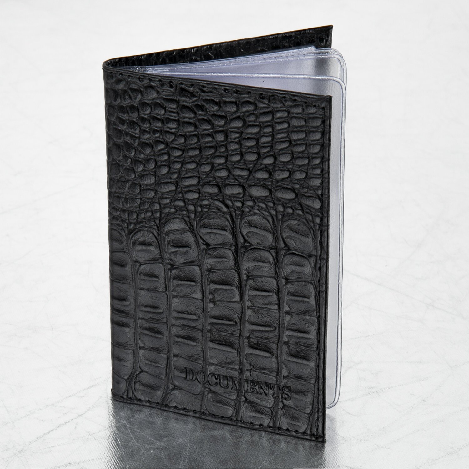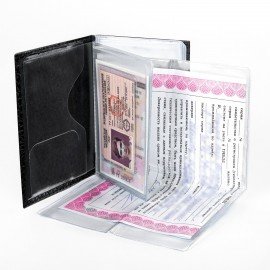 Модель выполнена из натуральной кожи в чёрном цвете с рисунком под кожу каймана. Вмещает в себя 6 пластиковых карманов: 1 файл для водительского удостоверения (60х89 мм), 4 файла размером 80х120 мм (подходят для СТС) и 1 файл для страхового полиса или доверенности формата А5 (150х216 мм) - документ формата А5 подразумевает его складывание пополам лицевой стороной наружу. Дополнительно присутствует карман для пластиковой карты. Компактный размер обложки (95х125 мм) позволяет всегда носить с собой нужные автодокументы.