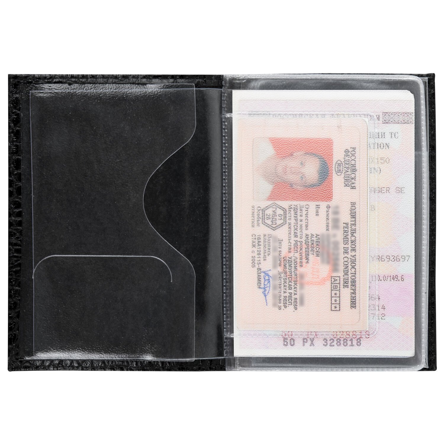 Обложка для автодокументов и паспорта натуральная кожа флоттер, "DOCUMENTS", черная, BRAUBERG 238193 238193 698.88