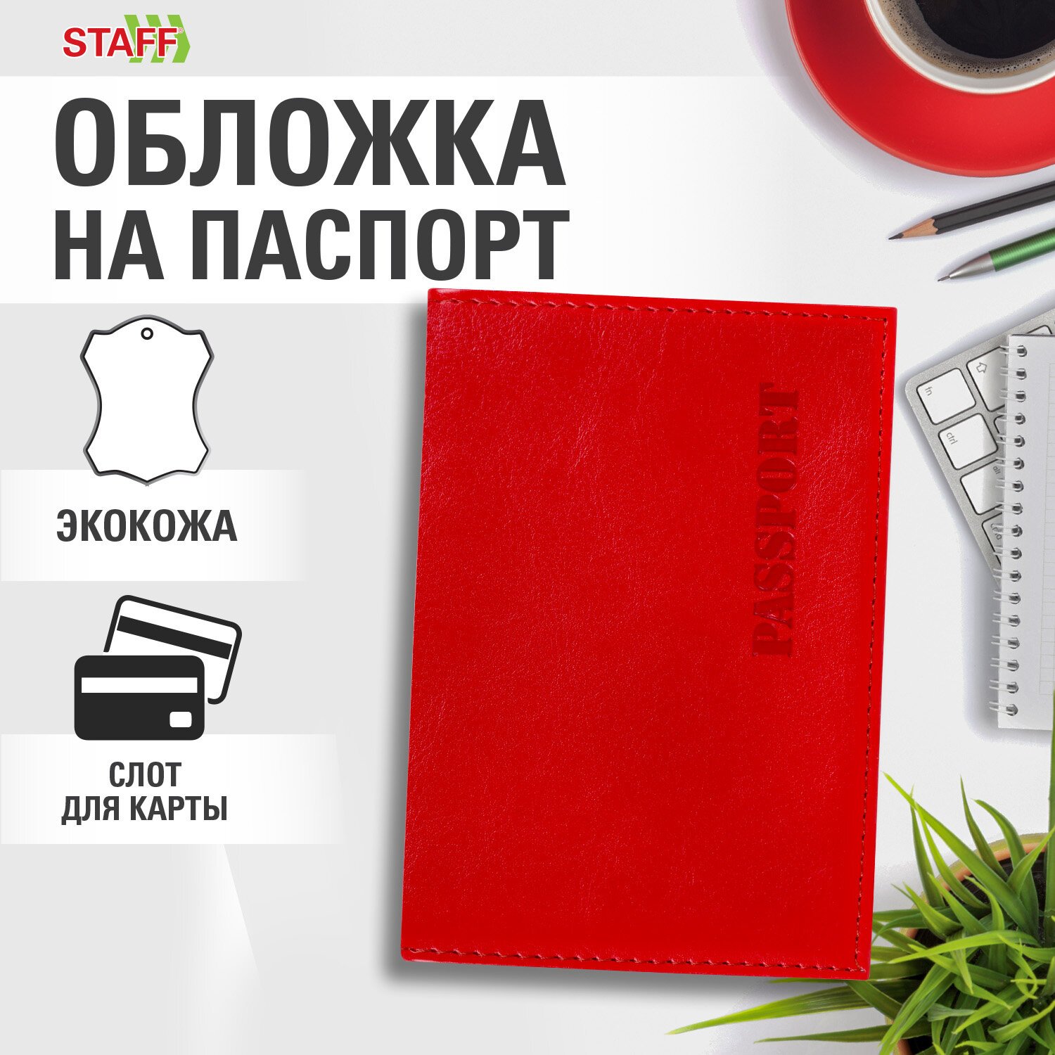 Обложка для паспорта экокожа, мягкая вставка изолон, "PASSPORT", красная, STAFF "Profit", 238408