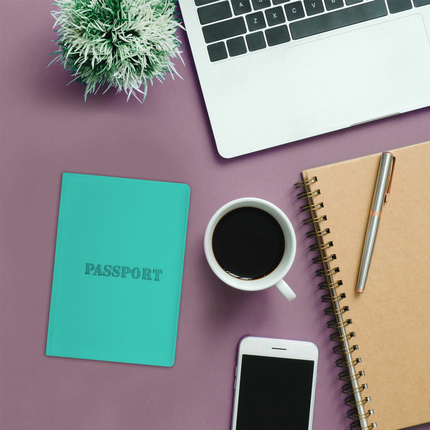 Обложка для паспорта, мягкий полиуретан, "PASSPORT", цвет "тиффани", STAFF, 238404