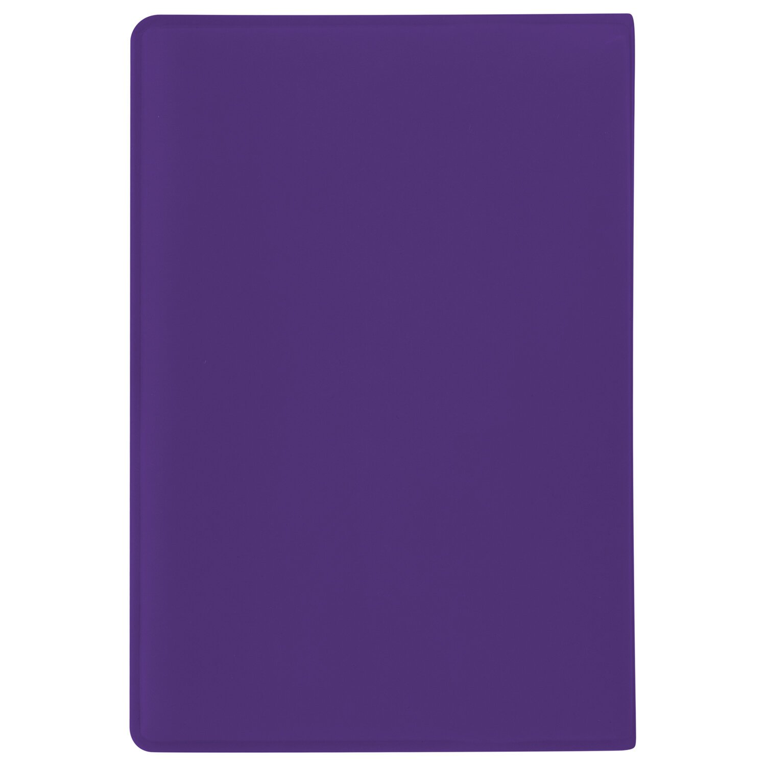 Модель выполнена из мягкого полиуретана яркого фиолетового цвета и украшена тисненой надписью "Паспорт". На внутреннем развороте расположены два кармана из прозрачного пластика, а благодаря компактным размерам 97х138 мм удобно всегда носить с собой.