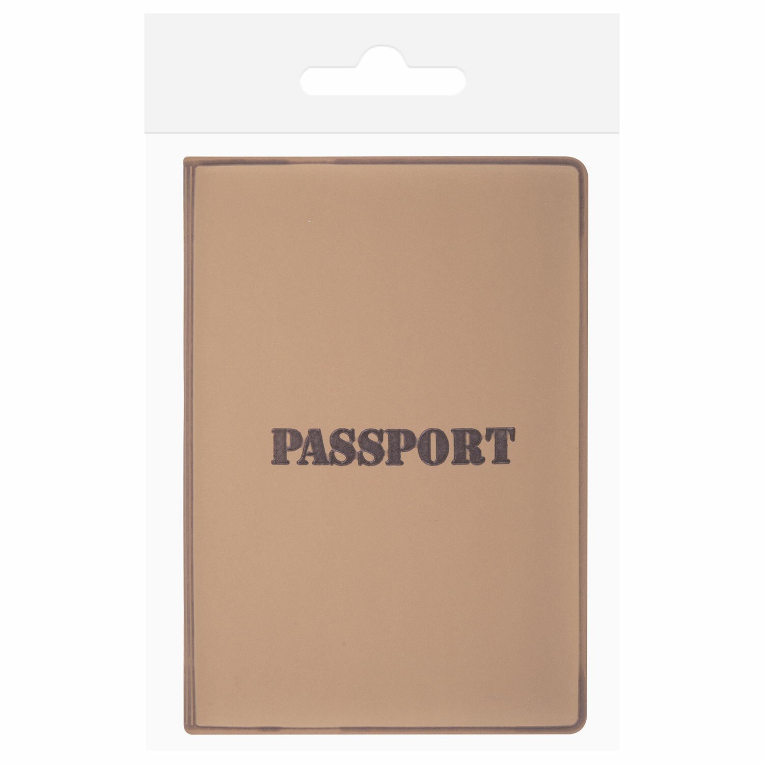 Обложка для паспорта, мягкий полиуретан, "PASSPORT", коричневая, STAFF, 238406