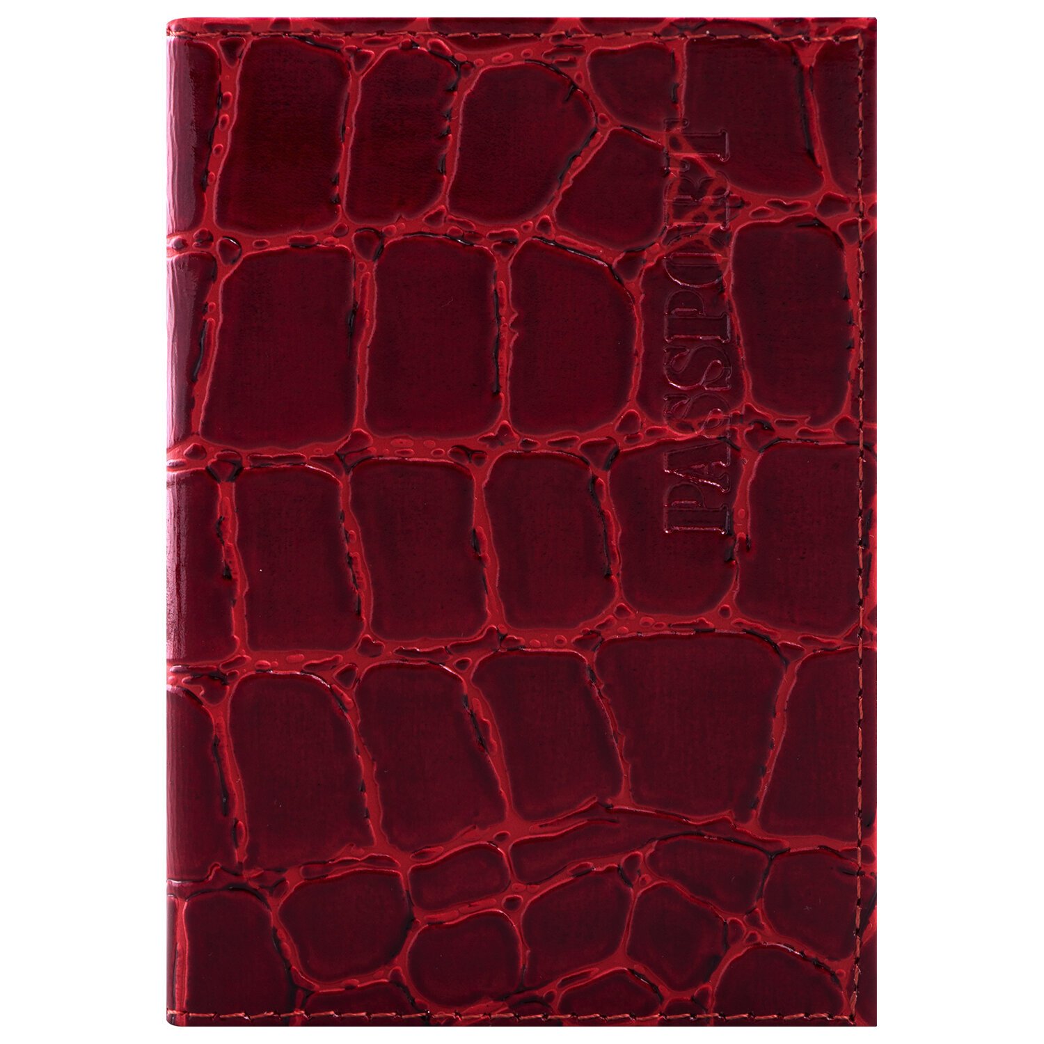 Обложка для паспорта натуральная кожа Croc, "PASSPORT", красная, BRAUBERG, 237180