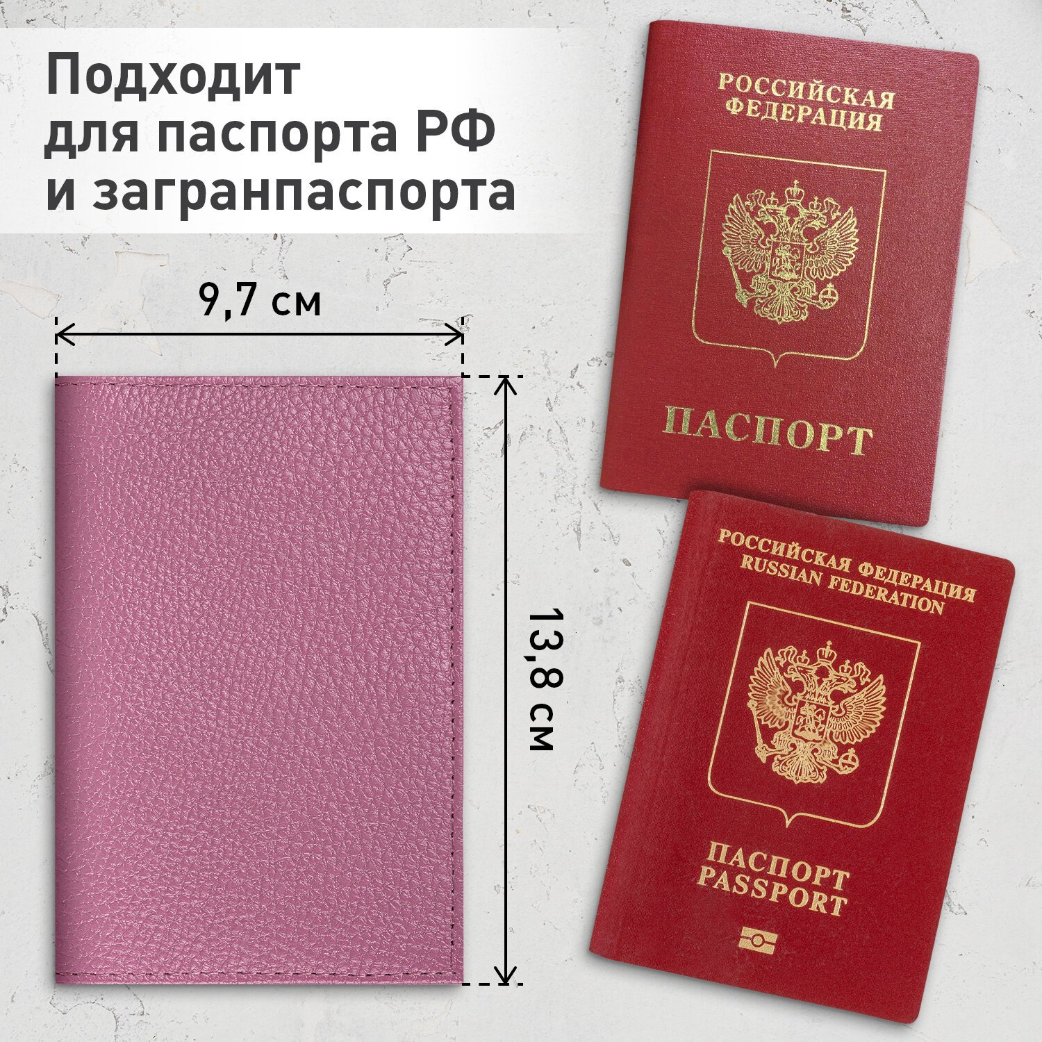 Обложка для паспорта натуральная кожа флоттер, кожаный уголок, лавандовая, BRAUBERG, 238864