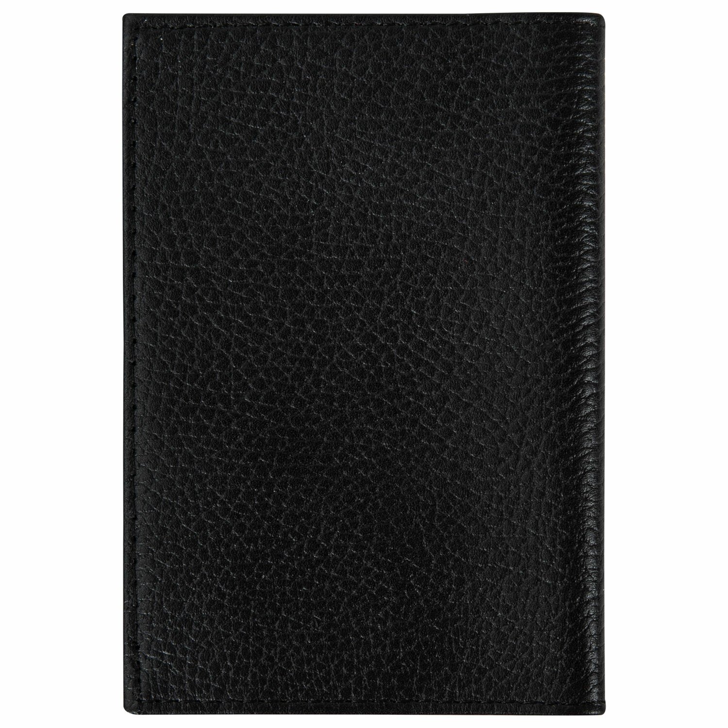 Модель выполнена из натуральной кожи "флоттер" насыщенного чёрного цвета, что подчеркнет стиль и изысканный вкус обладателя. На внутреннем развороте расположены два кармана из прозрачного пластика, а также дополнительный кожаный карман в виде уголка. Упакована в пакет с европодвесом.