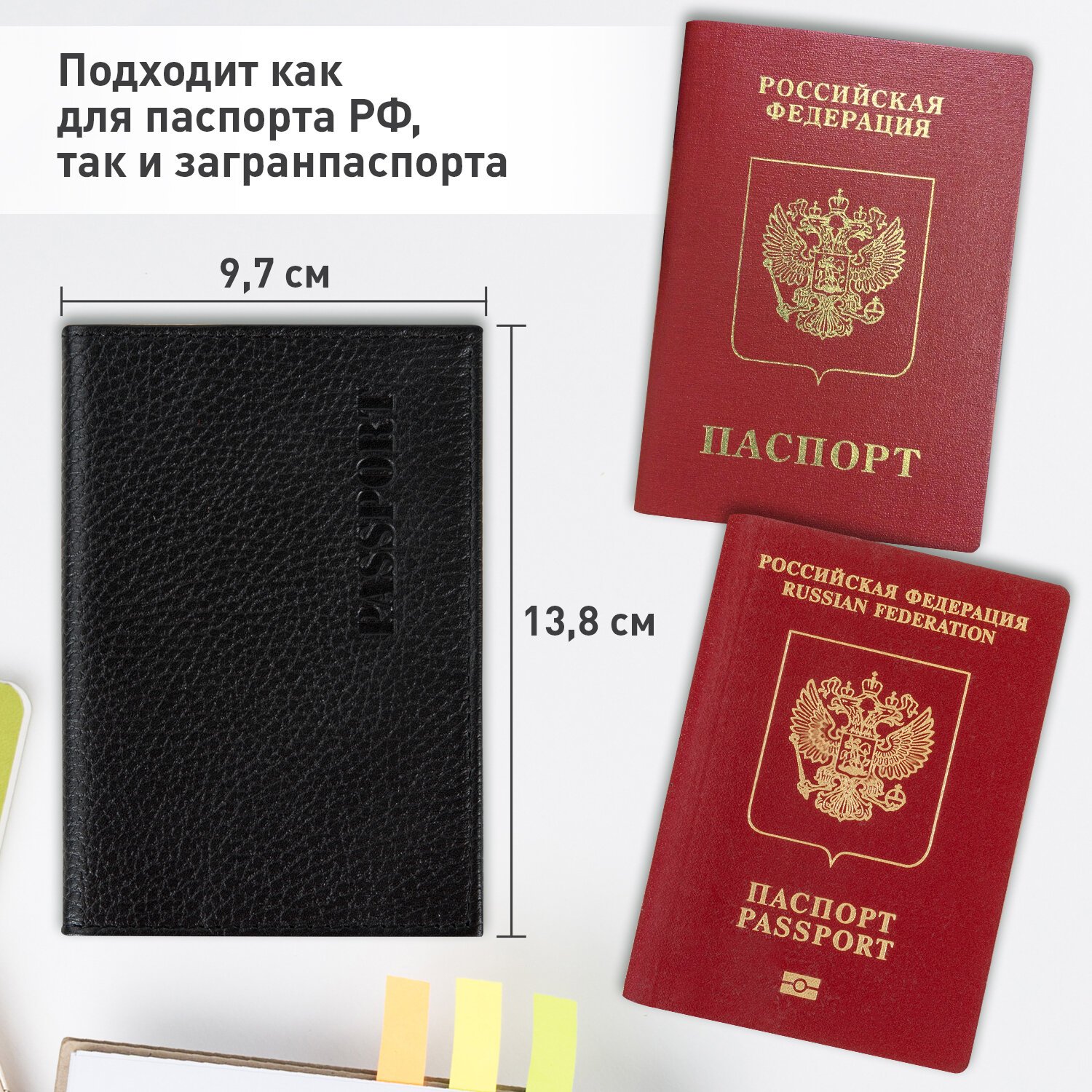 Обложка для паспорта натуральная кожа флоттер, "PASSPORT", кожаный уголок, черная, BRAUBERG, 238192