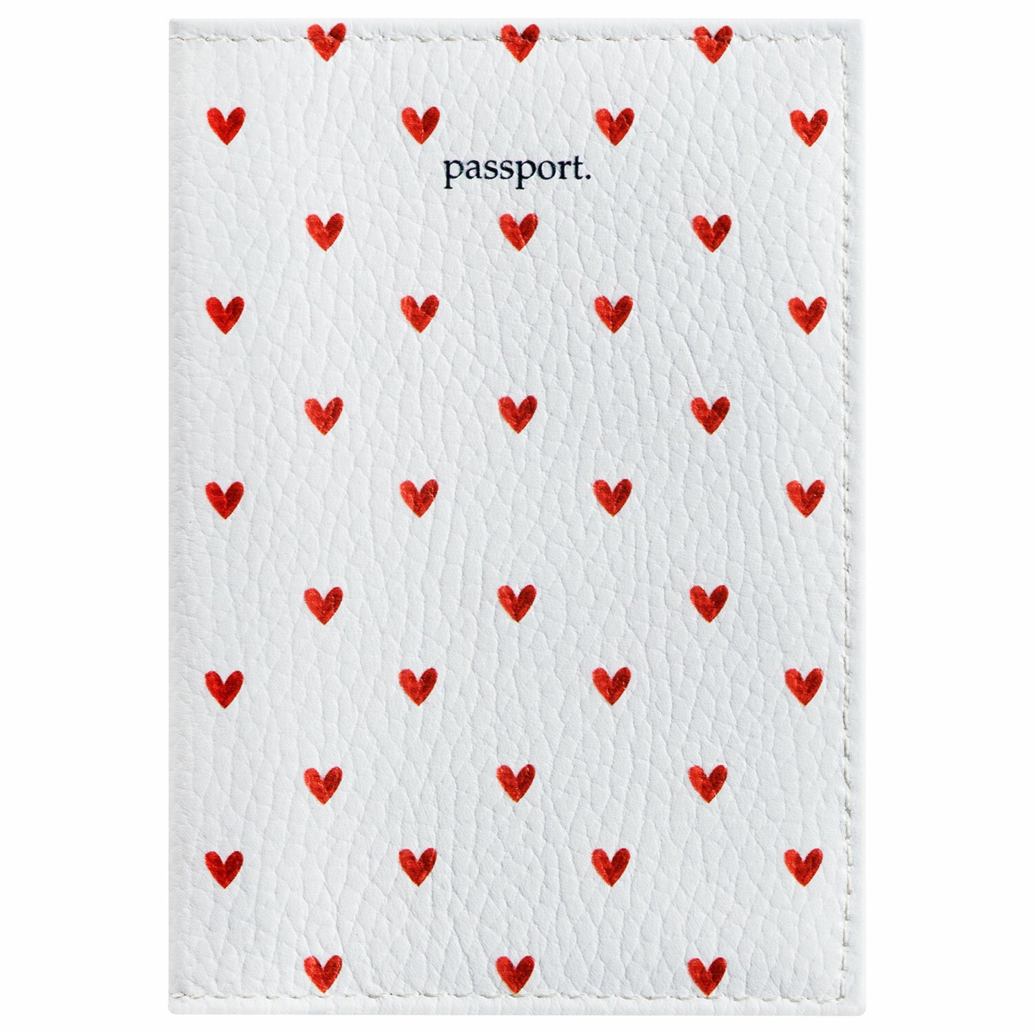 Обложка для паспорта натуральная кожа флоттер, принт "Сердечки", цвет белый, BRAUBERG, 238866