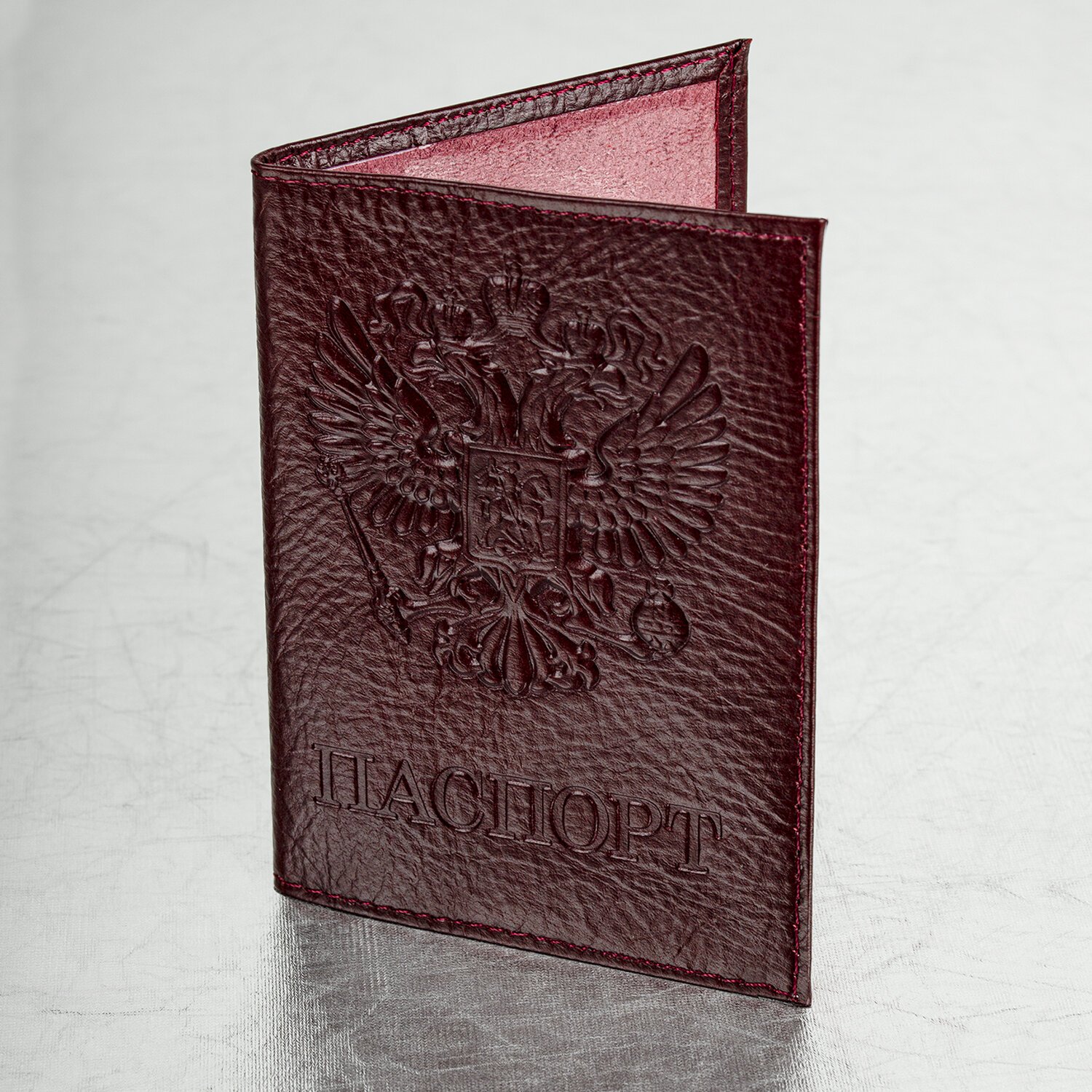 Модель выполнена из натуральной кожи глубокого темно-бордового цвета, что подчеркнет стиль и изысканный вкус обладателя. Украшена тисненой надписью "Паспорт" с государственной символикой "Герб", края прострочены. На внутреннем развороте расположены два кармана из прозрачного пластика. Размер - 97х138 мм. Упакована в пакет с европодвесом.