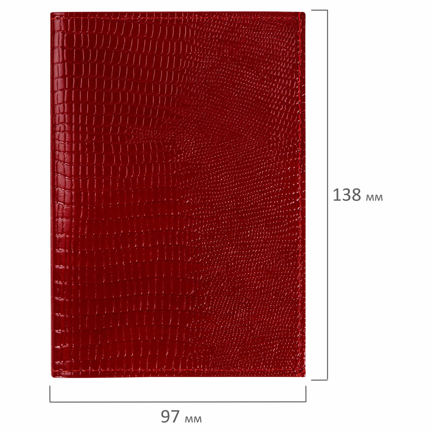 Обложка для паспорта натуральная кожа ящерица, без тиснения, красная, BRAUBERG, 238190