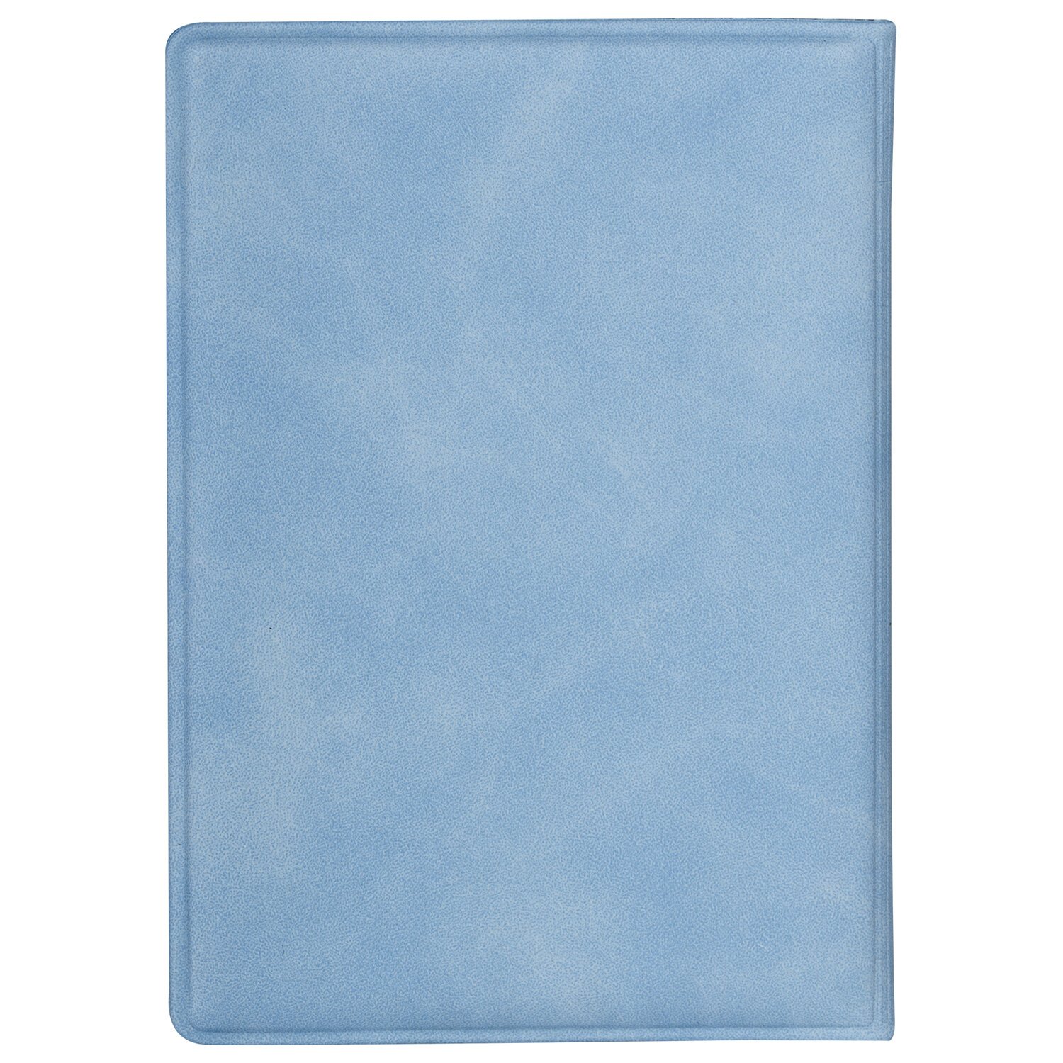 Модель выполнена из мягкой экокожи голубого цвета и украшена тисненой надписью "PASSPORT" и картой мира. На внутреннем развороте расположены два кармана из прозрачного пластика, а благодаря компактным размерам (97х138 мм) документ в обложке удобно носить с собой.