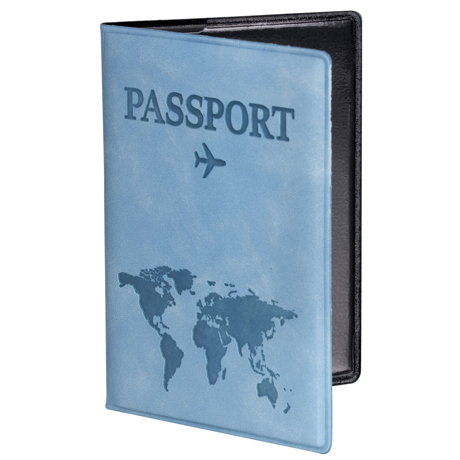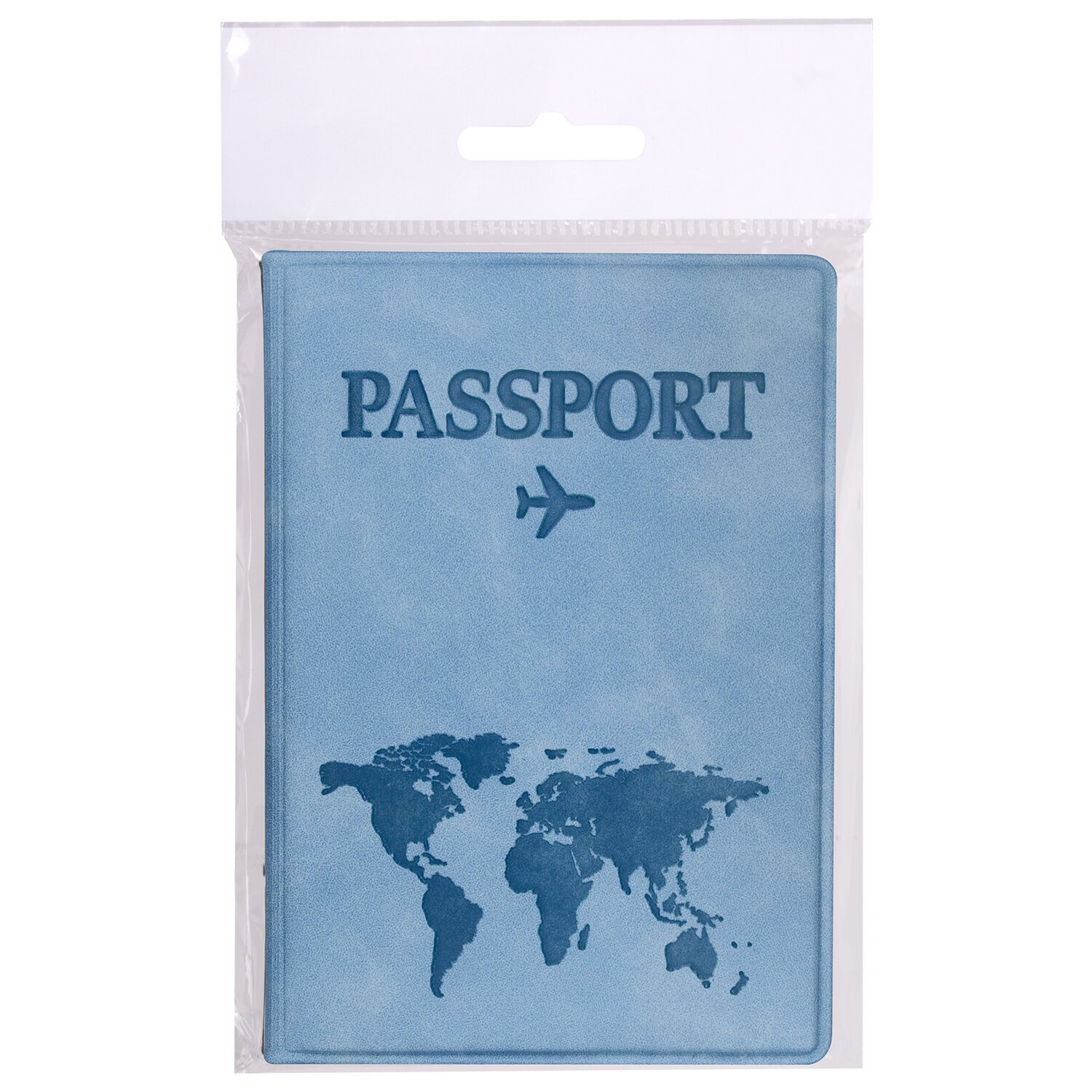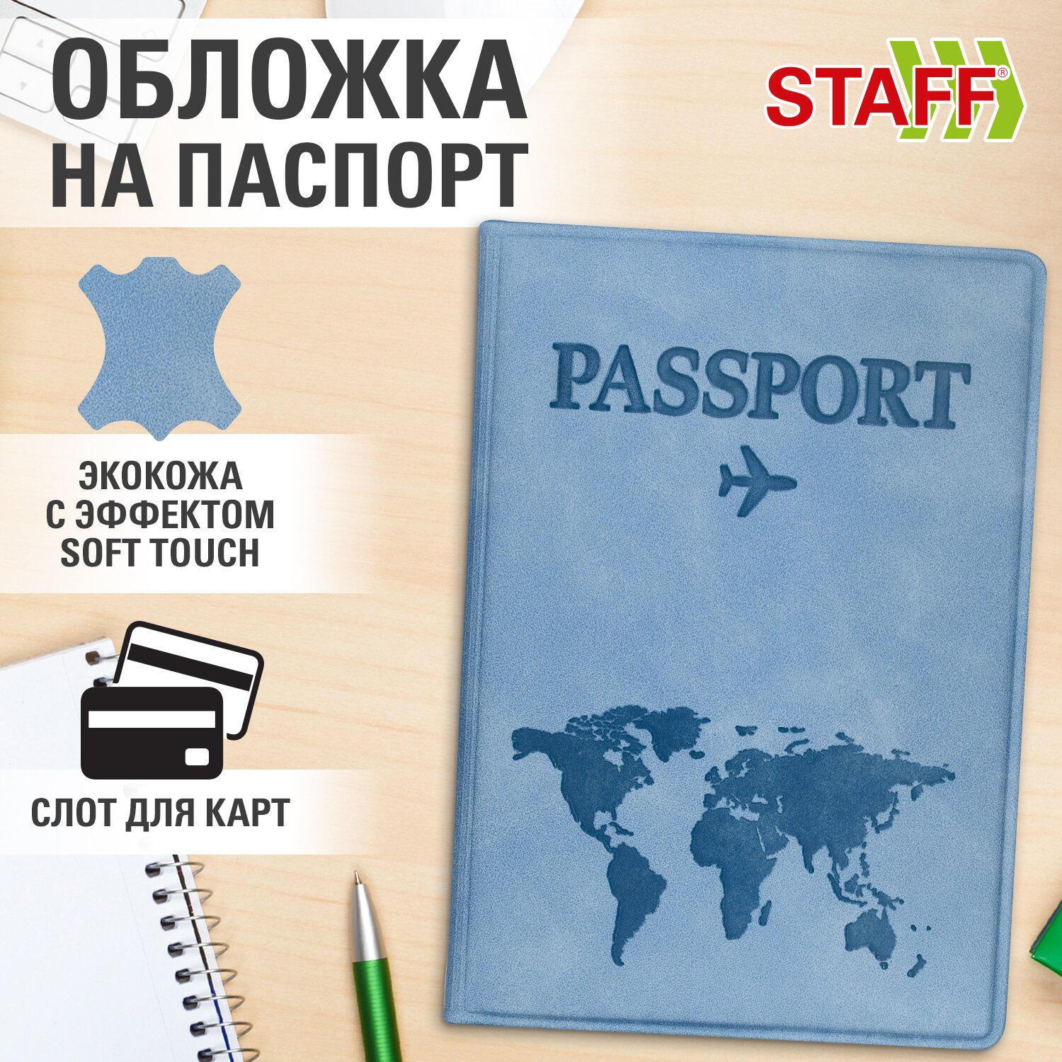 Обложка для паспорта "Passport Map", мягкая экокожа, голубая, STAFF, 238877