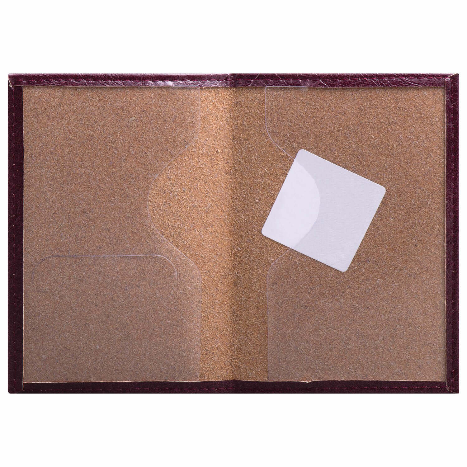 Модель выполнена из экокожи бордового цвета и украшена тисненой надписью "Паспорт". Имеет простроченные края. На внутреннем развороте расположены два кармана из прозрачного пластика. Благодаря компактным размерам 97х138 мм удобно всегда носить с собой.