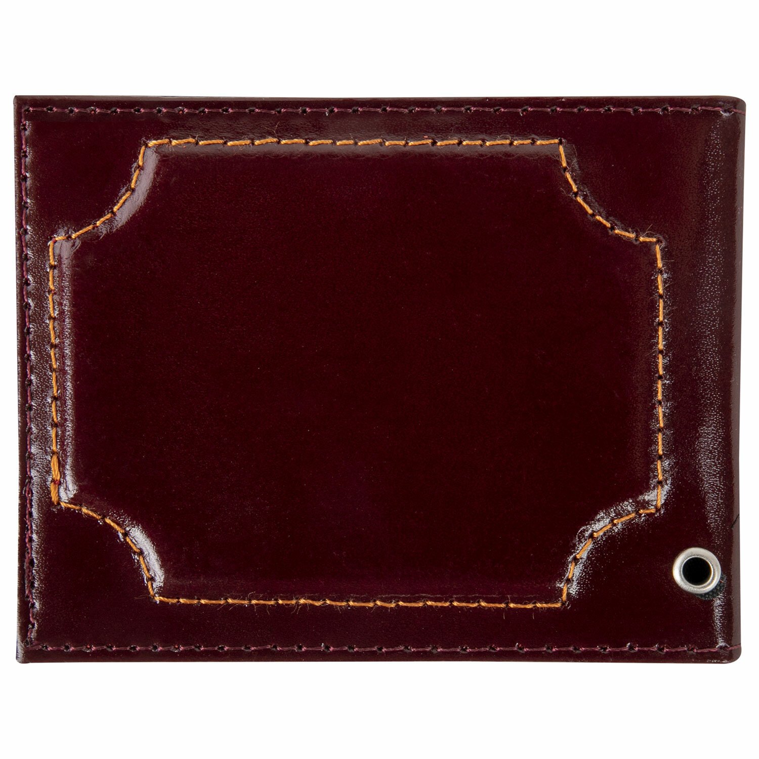 Модель выполнена из натуральной гладкой кожи бордового цвета, украшена золотым тиснением в виде герба и металлической кокардой "Герб России". Имеет один карман. Благодаря компактным размерам (7х83х105 мм) удобно всегда носить с собой. Дополнительно в обложке имеется металлический люверс для крепления, можно прицепить страховочную цепочку.
