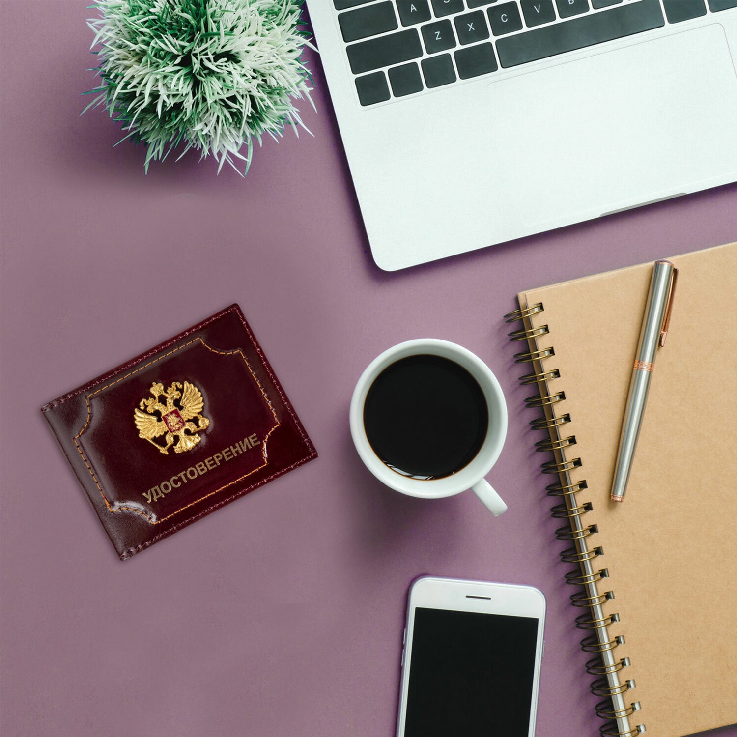 Обложка для удостоверения натуральная кожа пулап, герб + "УДОСТОВЕРЕНИЕ", бордовая, BRAUBERG, 238200