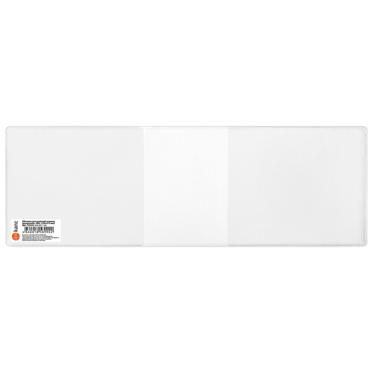Обложка для зачетной книжки, 105*315 мм, ПВХ, прозрачная, ДПС, 1224.К