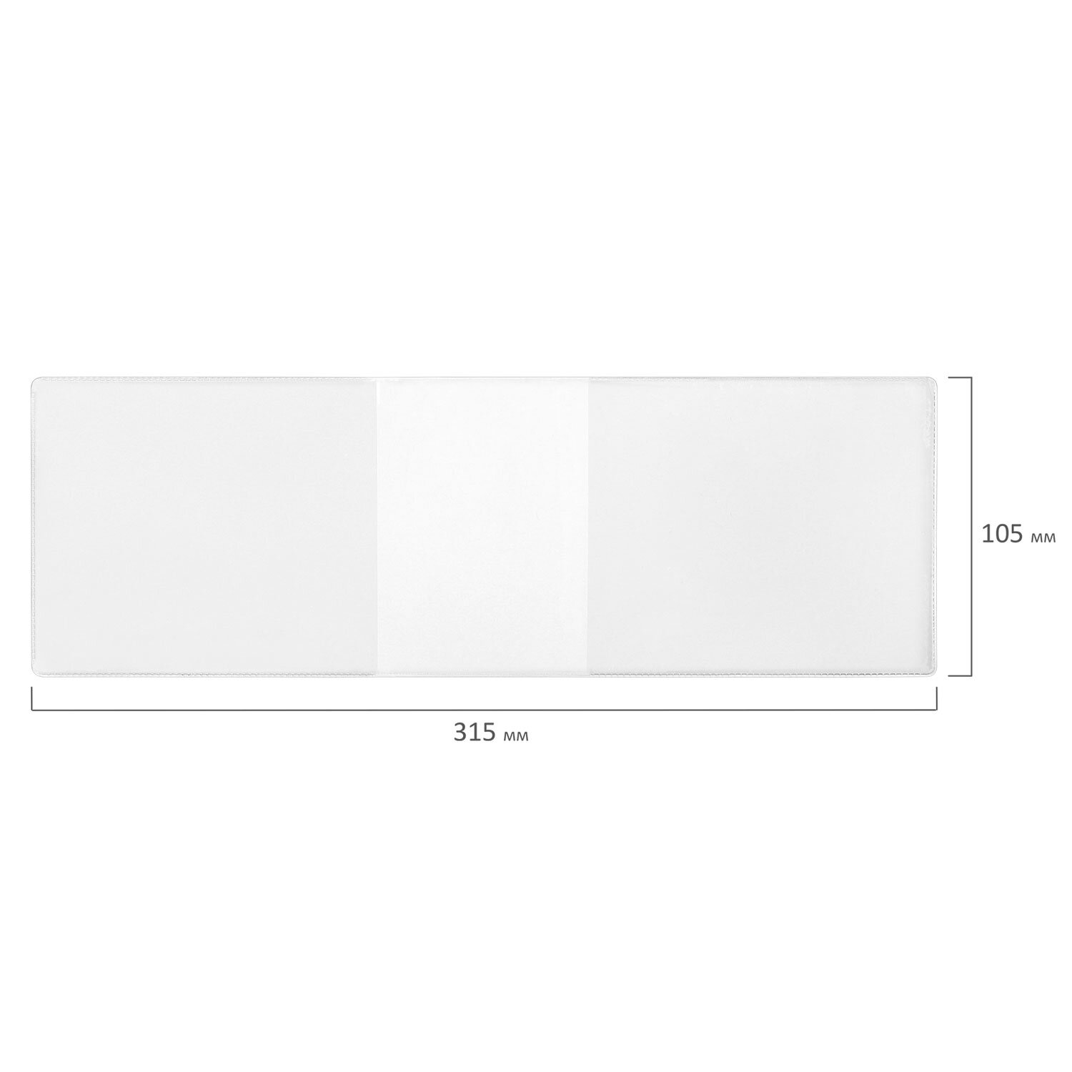Обложка выполнена из плотного ПВХ прозрачного цвета и имеет размер 105х315 мм.