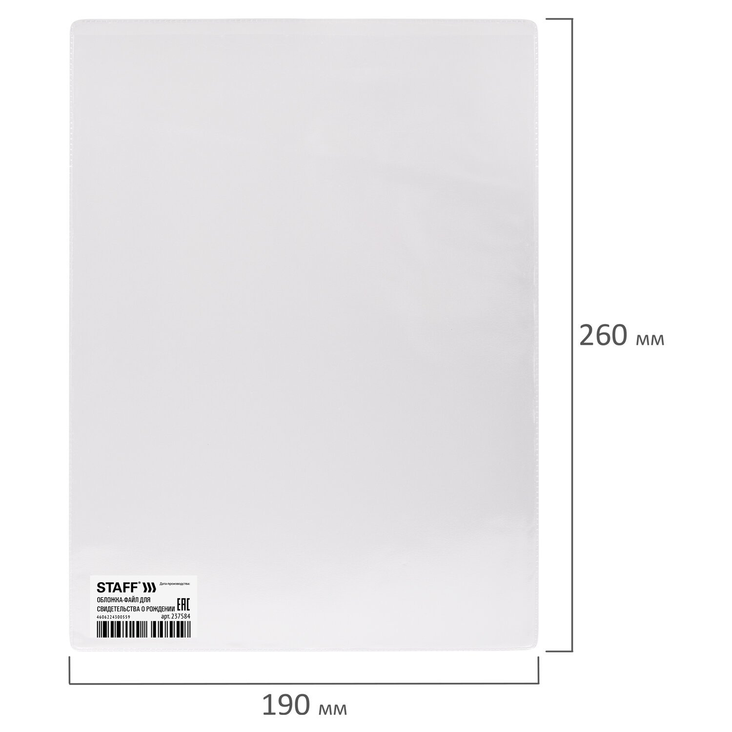 Обложка-файл для свидетельства о рождении, 190х260 мм, ПВХ, прозрачная, STAFF, 237584