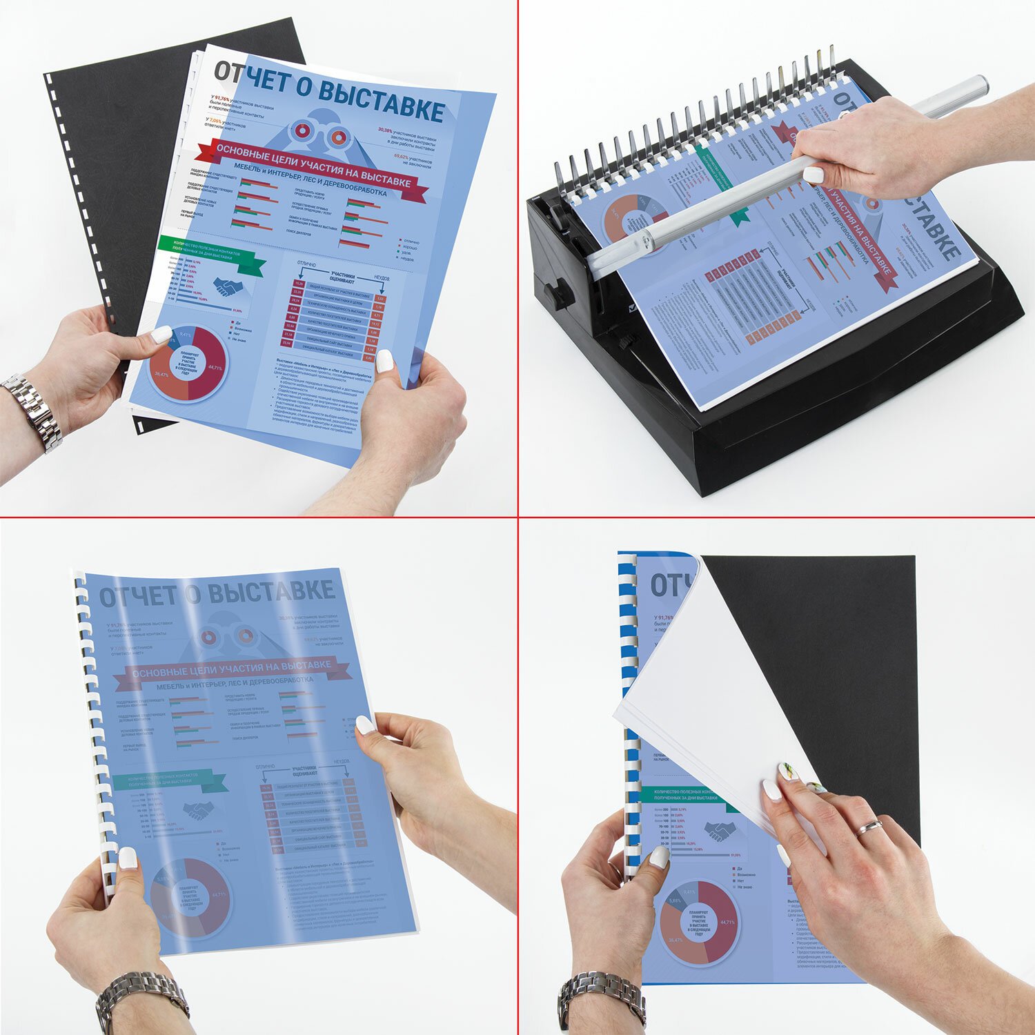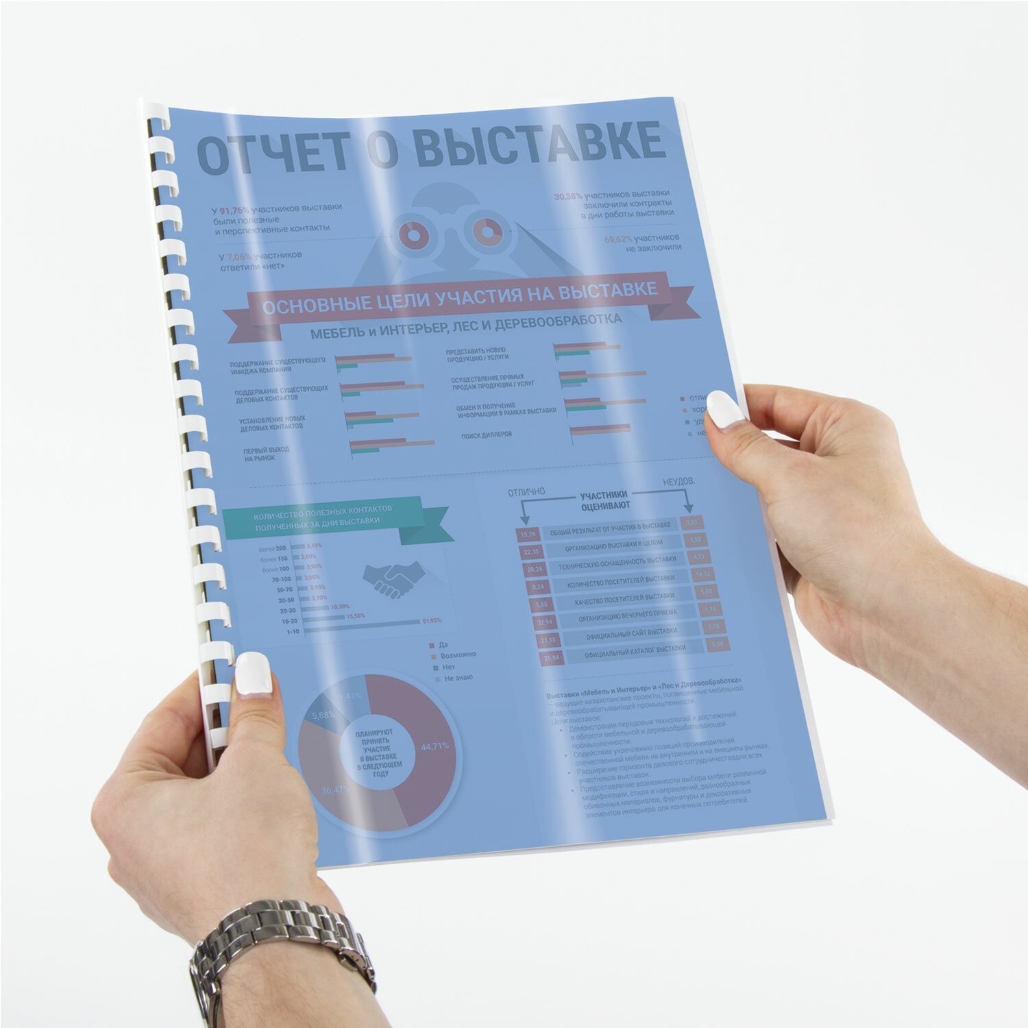 Пластиковые обложки ОФИСМАГ предназначены для переплета документов брошюровщиком с помощью пластиковых и металлических пружин.