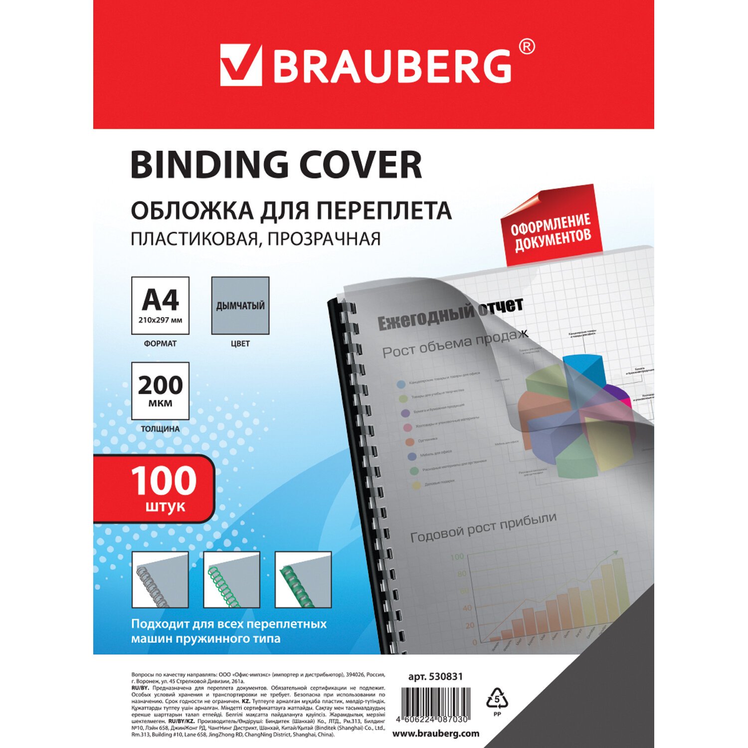 Пластиковые обложки BRAUBERG придадут документам эстетичный внешний вид и защитят от повреждений. Предназначены для переплета документов брошюровщиком с помощью пластиковых и металлических пружин.