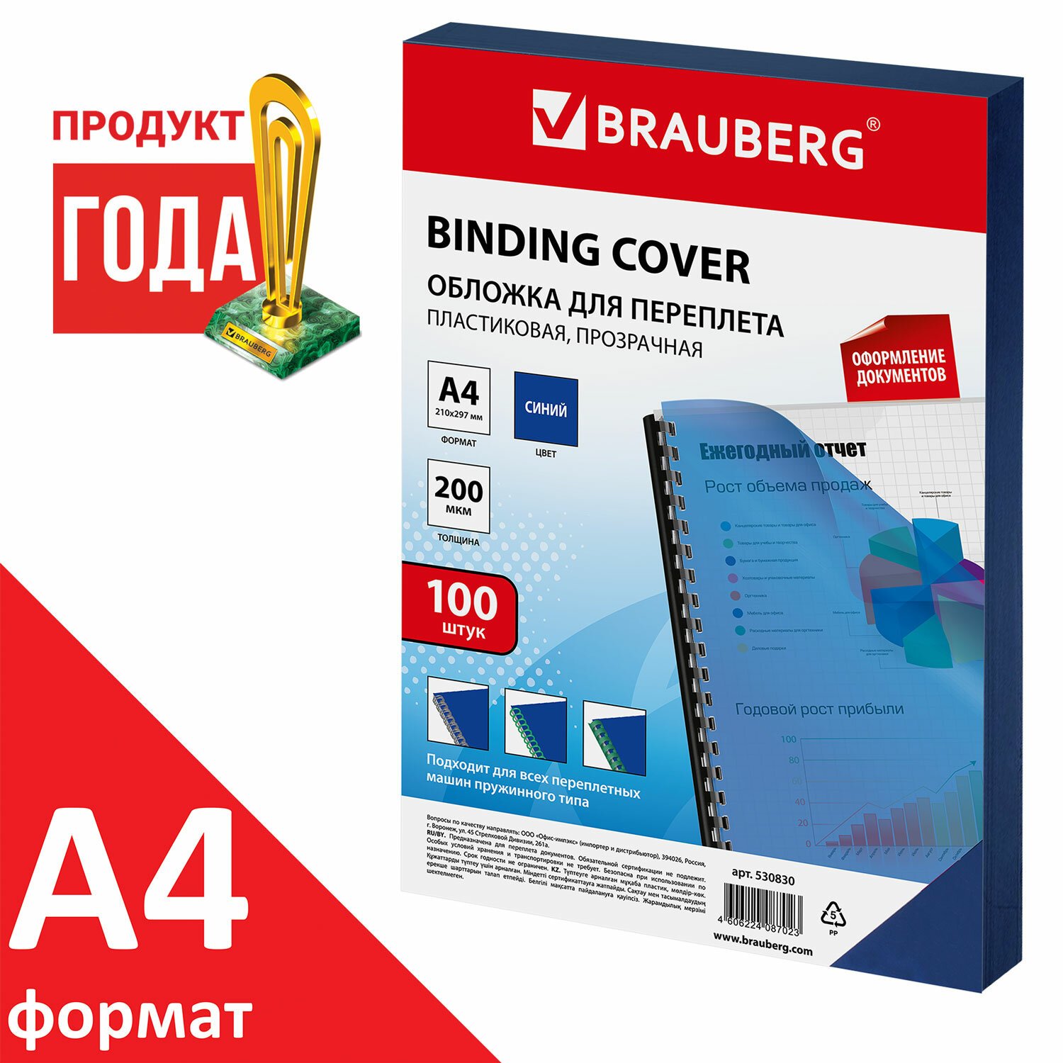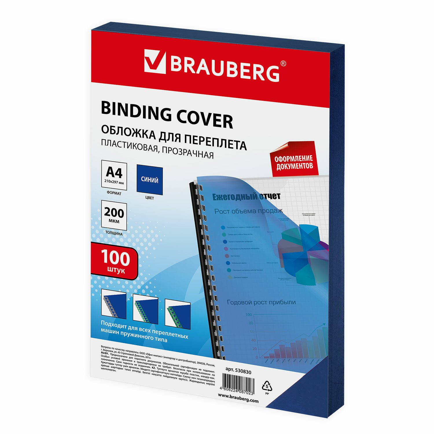 Пластиковые обложки BRAUBERG придадут документам эстетичный внешний вид и защитят от повреждений. Предназначены для переплета документов брошюровщиком с помощью пластиковых и металлических пружин.