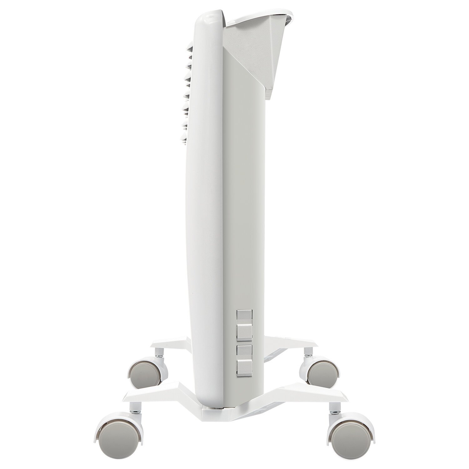 Обогреватель-конвектор BALLU BEC/ETER-1500 заключен в стальной корпус белого цвета защищенный от влаги и пыли по IP24-стандарту и дополнен колесиками для легкого перемещения по комнате.