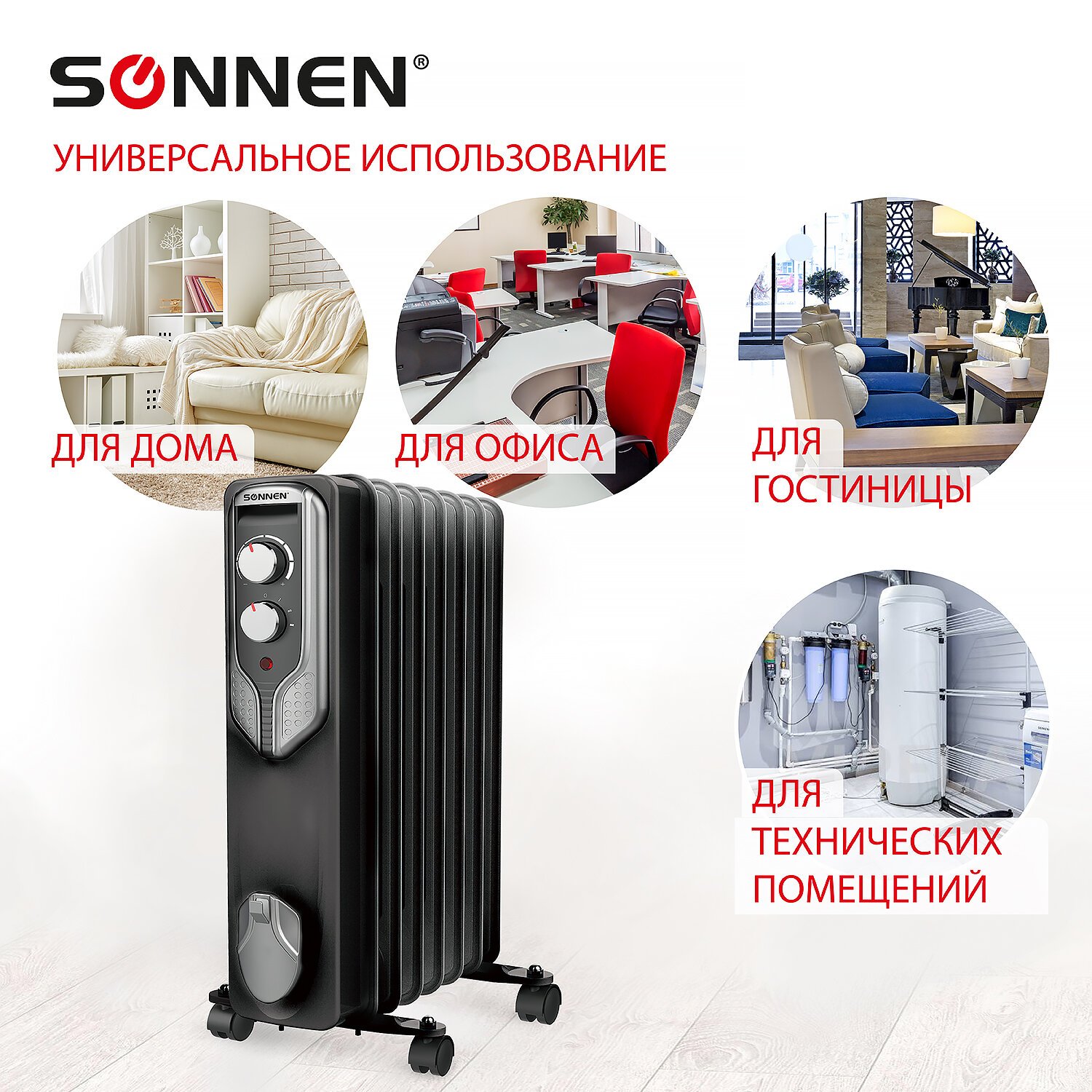 Масляный обогреватель SONNEN DFN-07BL предназначен для поддержания комфортной температуры воздуха в помещении.