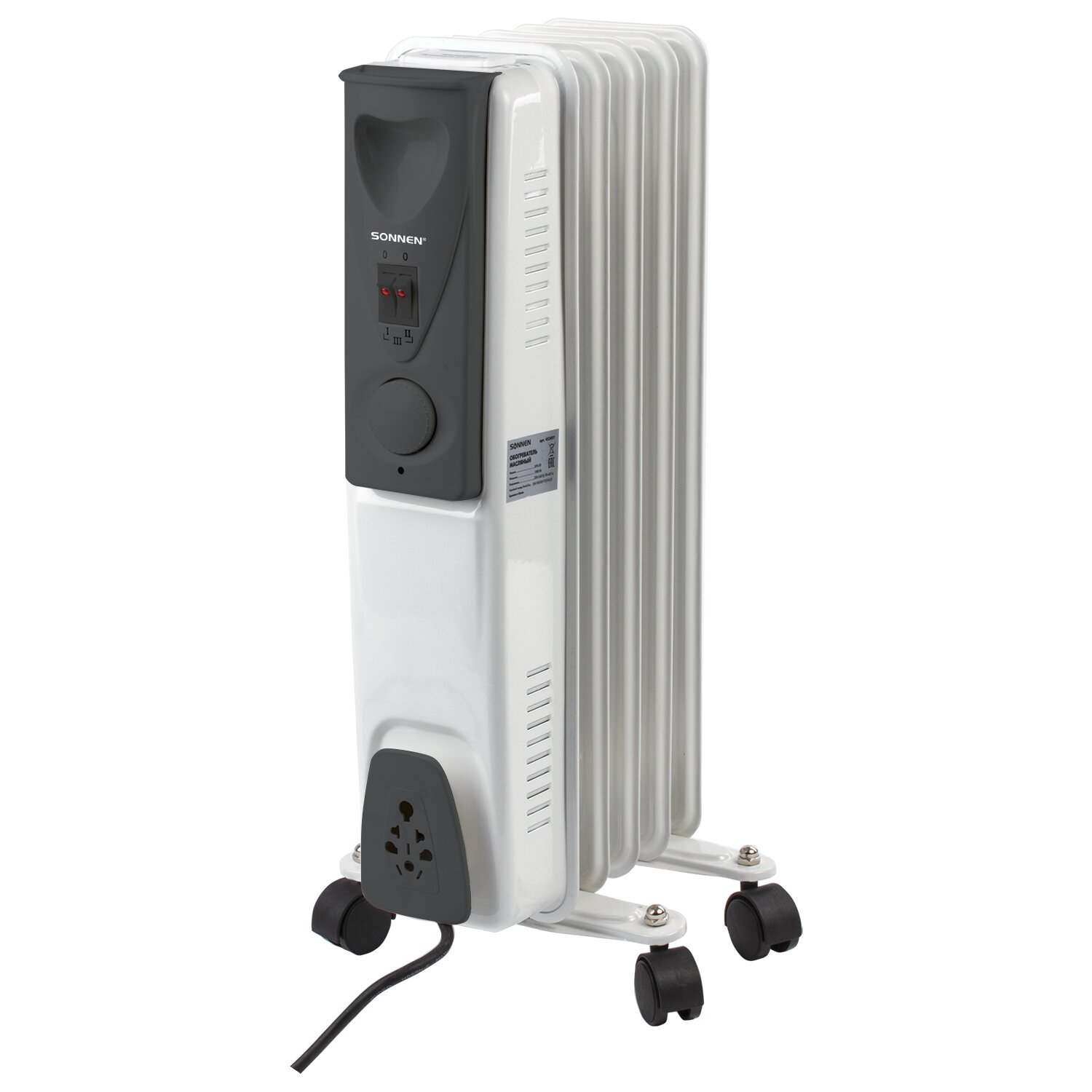 Обогреватель масляный SONNEN DFS-07, 1500 Вт, 7 секций, белый, 453498