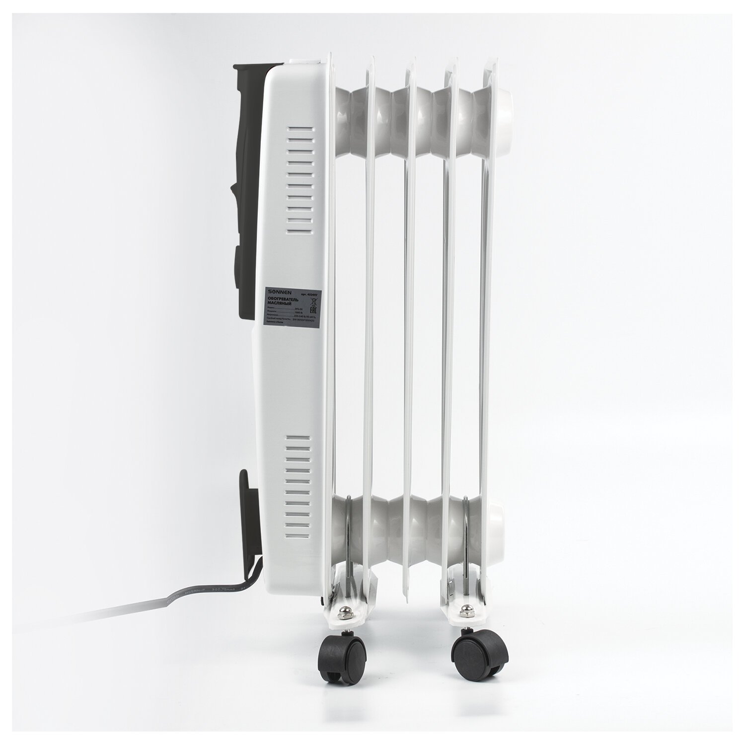 Обогреватель масляный SONNEN DFS-05, 1000 Вт, 5 секций, белый, 453497