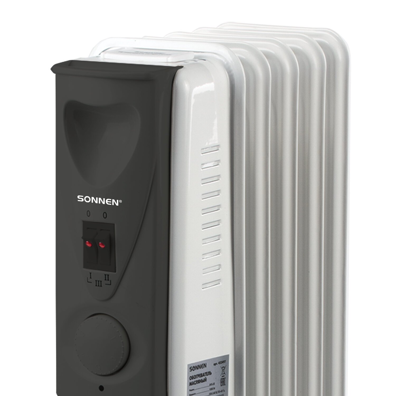 Обогреватель масляный SONNEN DFS-9E, 2000 Вт, механическое управление, 3 режима, 9 секций, белый, 457780