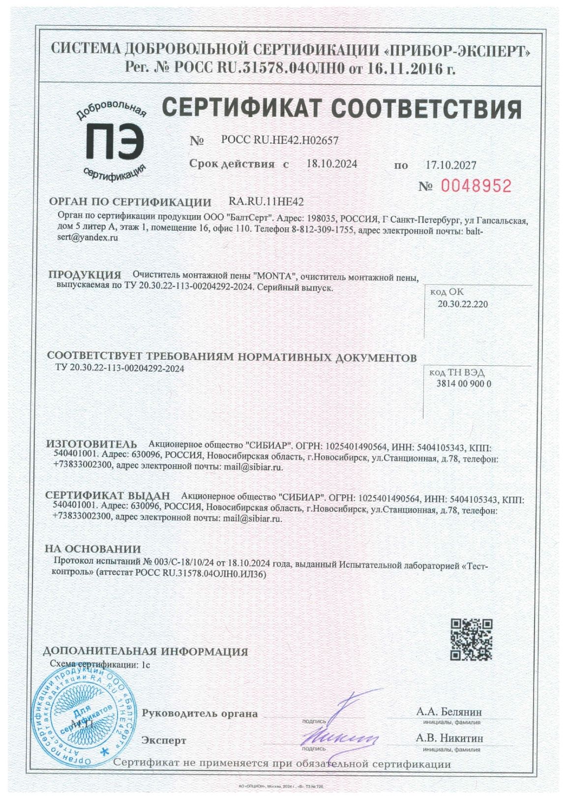 Очиститель монтажной пены MONTA в баллоне 440 мл предназначен для удаления остатков свежей монтажной пены с различных поверхностей, таких как дерево, металл, пластик и стекло. Подходит для промывки монтажных пистолетов.