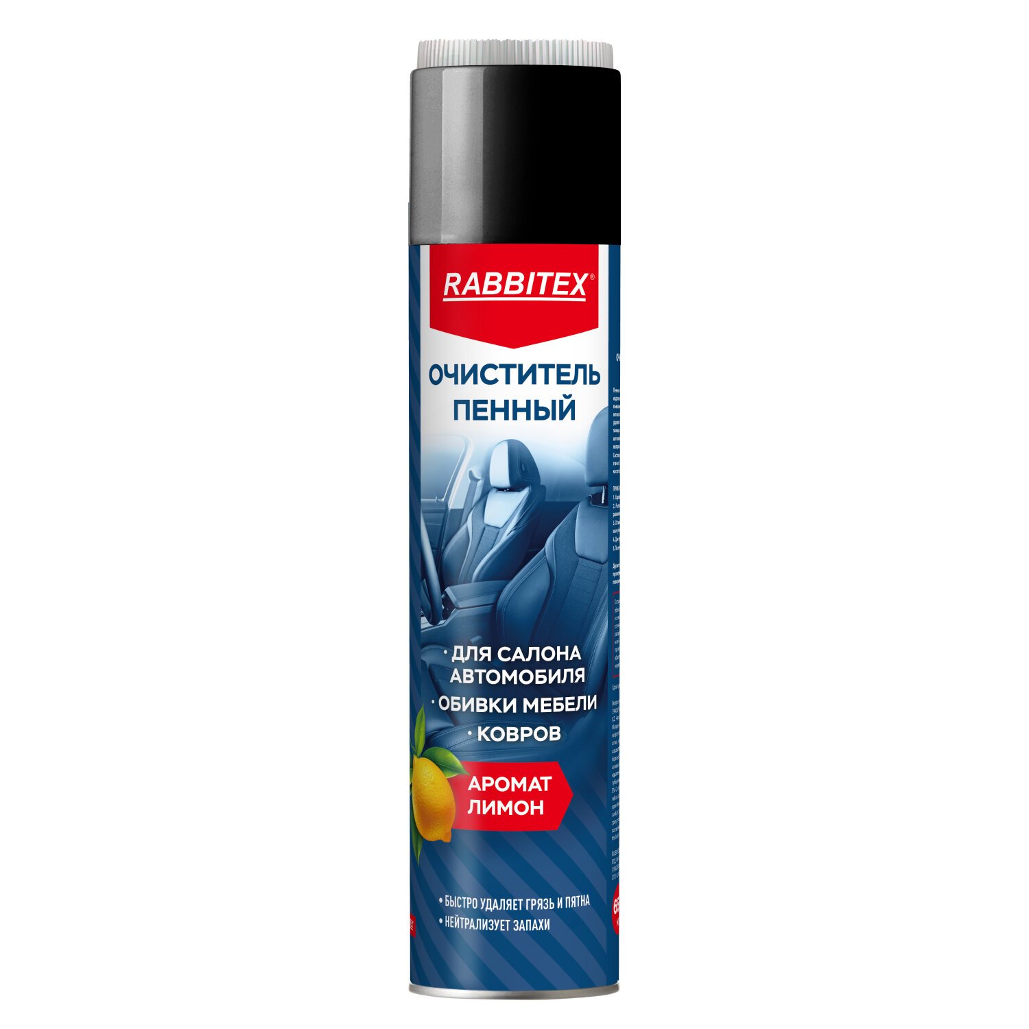 Очиститель пенный для обивки мебели и салона автомобиля 650 мл, ЛИМОН, аэрозоль, RABBITEX, 700306