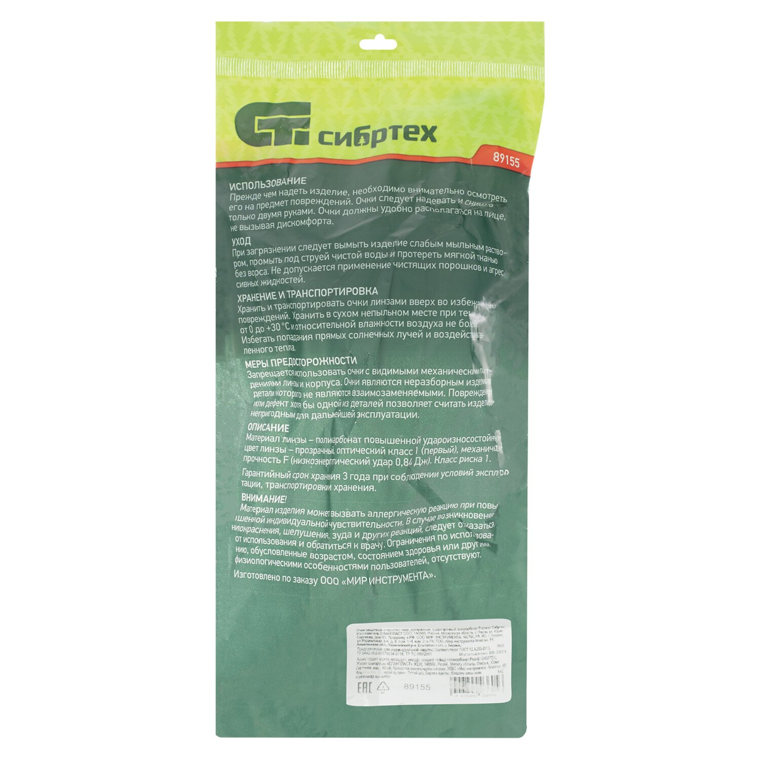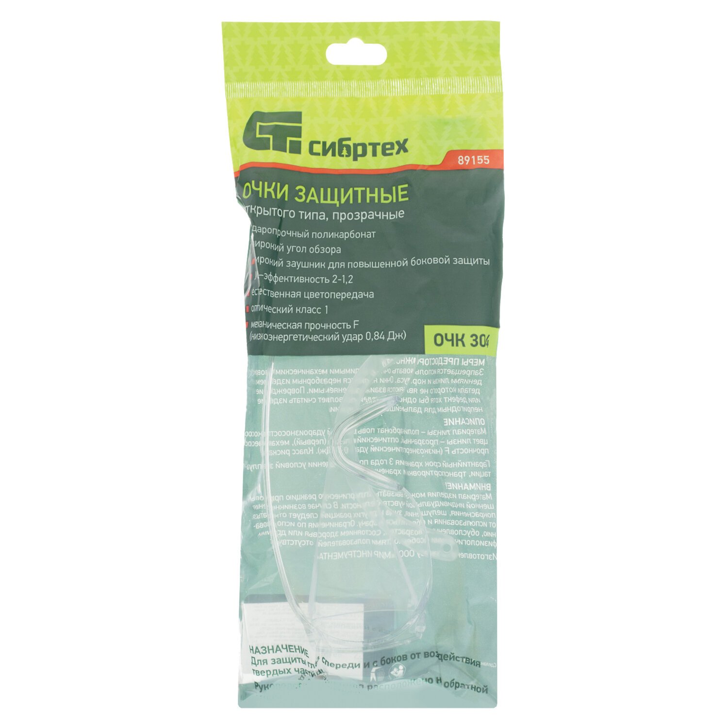 Очки защитные СИБРТЕХ, открытого типа, прозрачные, ударопрочный поликарбонат, 89155