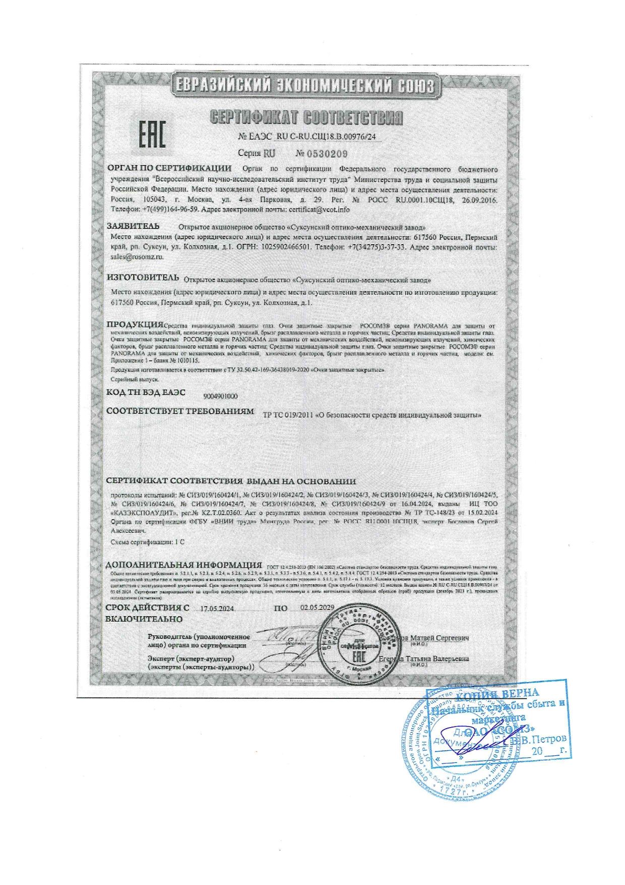 | Соответствует требованиям ГОСТа | ГОСТ 12.4.253-2013 |