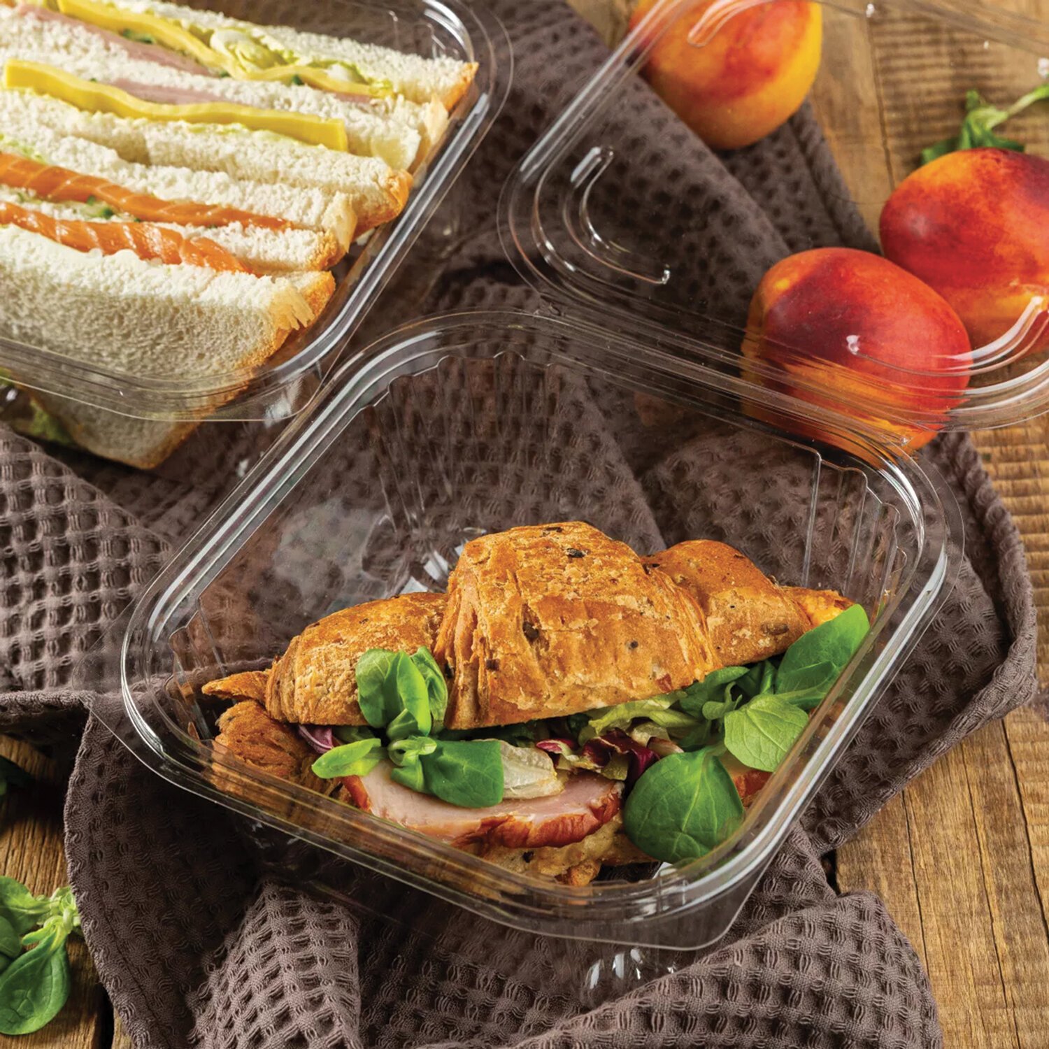 Комплект квадратных одноразовых контейнеров объемом 500 мл с крышкой.