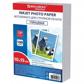 Фотобумага глянцевая, 10х15 см, 230 г/м2, односторонняя, 100 листов, ПАКЕТ, BRAUBERG ORIGINAL, 364409