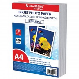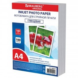 Фотобумага глянцевая, А4, 140 г/м2, односторонняя, 100 листов, ПАКЕТ, BRAUBERG ORIGINAL, 364414