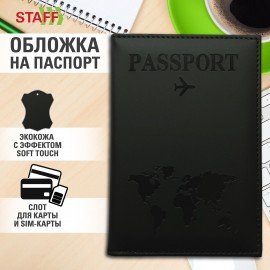 Обложка для паспорта STAFF, полиуретан под кожу, "ПАСПОРТ", черная, 237599