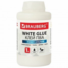 Клей ПВА BRAUBERG, 1 кг, универсальный (бумага, картон, дерево), 600983