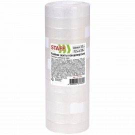 Клейкие ленты 12 мм х 33 м канцелярские STAFF CLASSIC, КОМПЛЕКТ 12 шт., прозрачные, 271259
