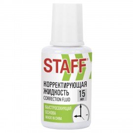 Корректирующая жидкость STAFF "Basic", быстросохнущая, 15 мл, с кисточкой, 226055