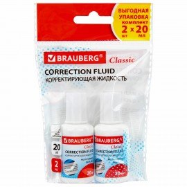Корректирующая жидкость BRAUBERG "Classic", быстросохнущая, 20 мл, с кисточкой, 220255
