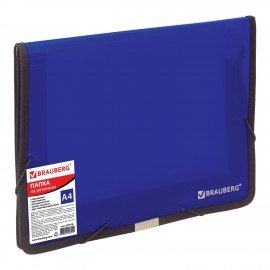 Папка на резинках BRAUBERG, стандарт, синяя, до 300 листов, 0,5 мм, 221623