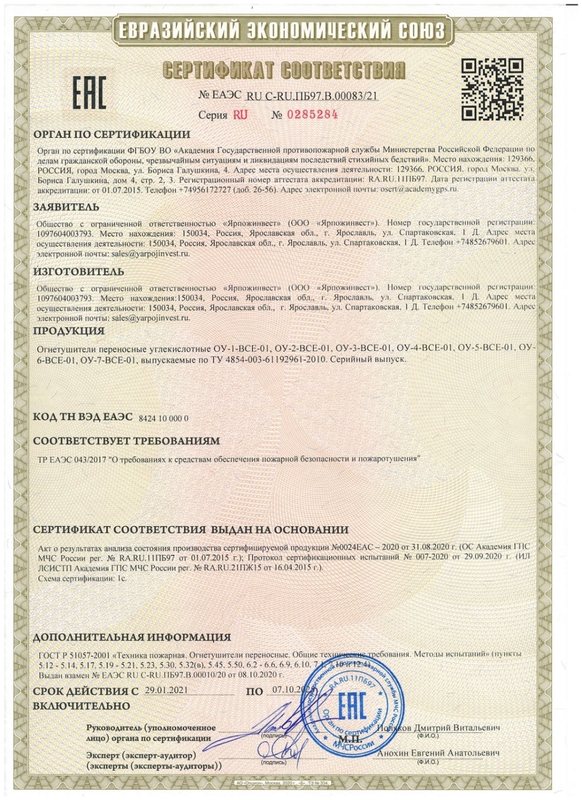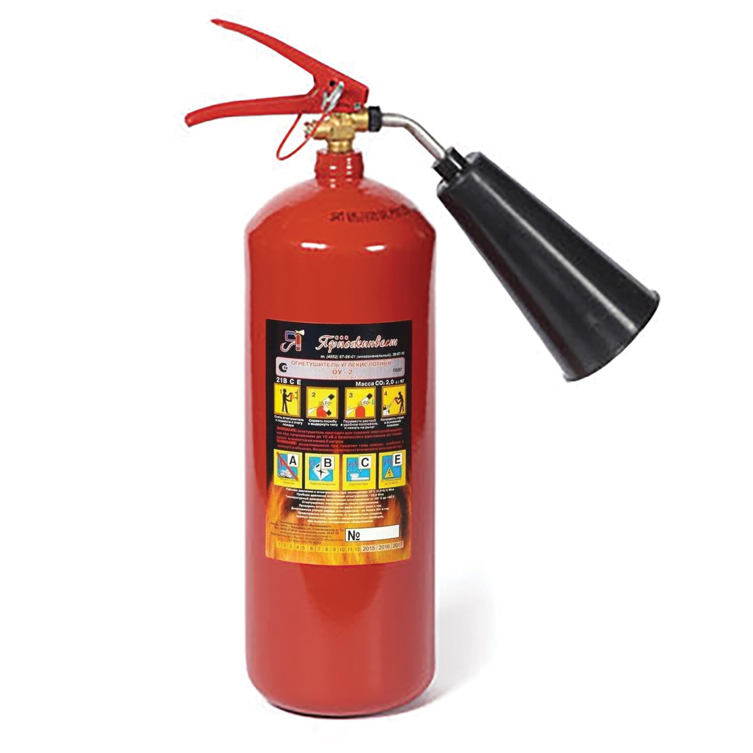 Огнетушитель углекислотный ОУ-2, ВСЕ, закачной, в индивидуальном коробе, ЯРПОЖ, 41