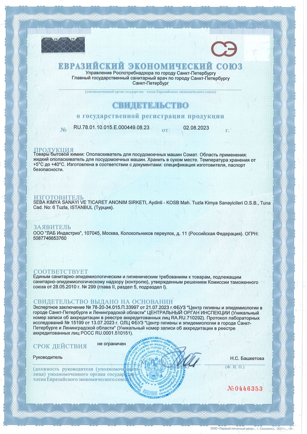 Ополаскиватель "Сомат" придает сияющий блеск посуде и способствует ее быстрому высыханию. Он защищает от известкового налета и сохраняет чистоту посудомоечной машины. Перед использованием внимательно ознакомьтесь с инструкцией от производителя Вашей посудомоечной машины.