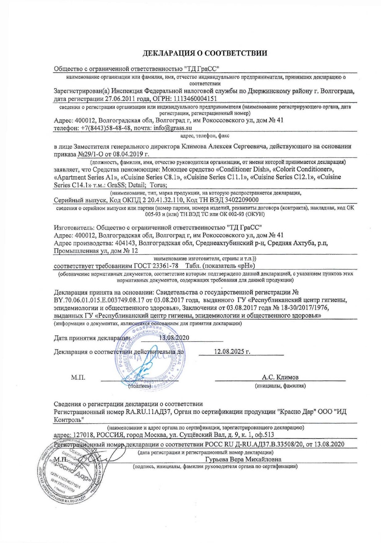 Ополаскиватель для посудомоечных машин 5 кг GRASS CONDITIONER DISH, кислотное, концентрат, 92778, 216101