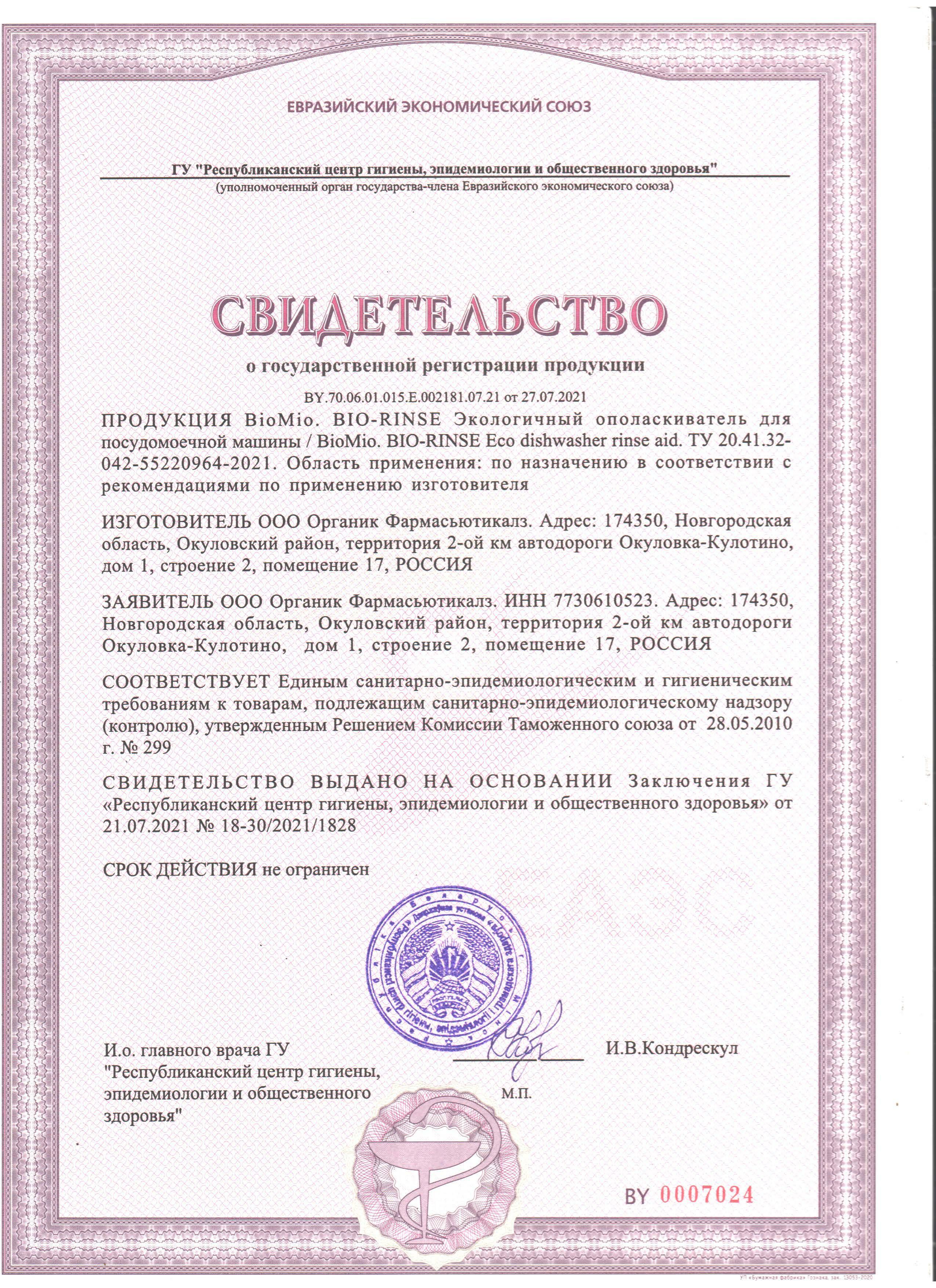 Экологичный ополаскиватель для посудомоечной машины BIOMIO BIO-RINSE повышает эффективность мытья посуды, предотвращая образование на её поверхности разводов, подтеков и налета. Придает ослепительный блеск стеклу и столовым приборам.