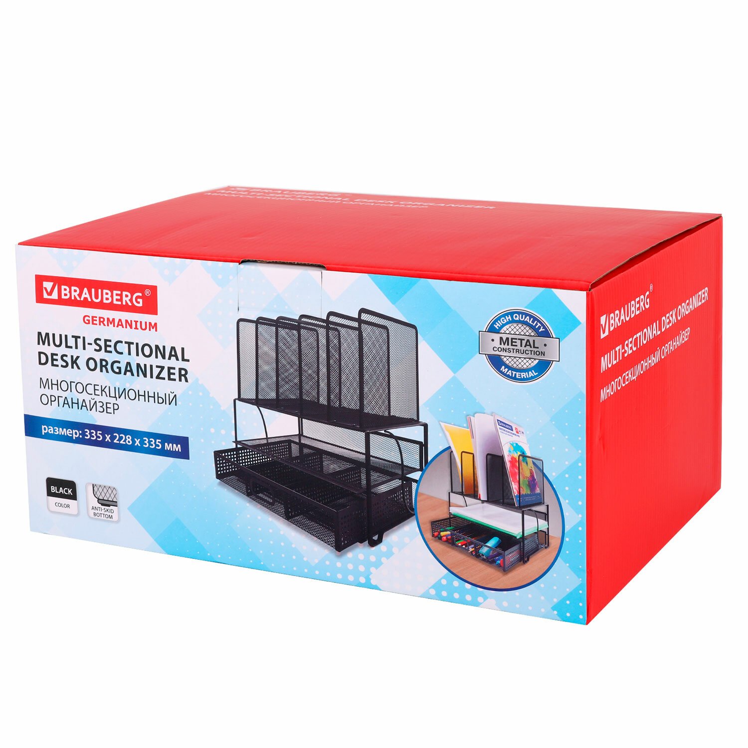 Органайзер многосекционный металлический BRAUBERG "Germanium", 335х228х335 мм, черный, 272474