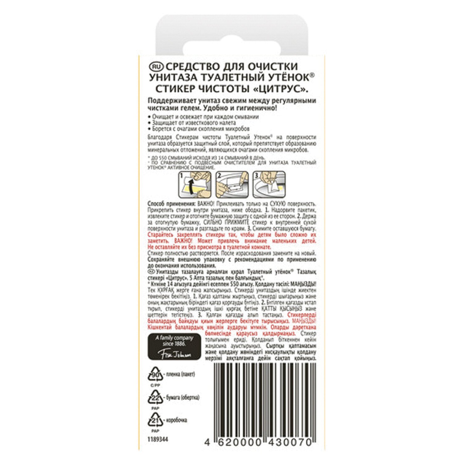 Туалетный Утенок Стикер чистоты Цитрус. Средство для очистки унитаза.