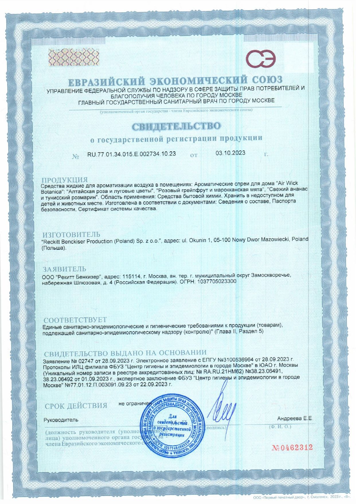 Состав: менее 5%: спирт этиловый денатурированный, неионогенные ПАВ, ароматизатор, линалоол, d-лимонен, цитронеллол.